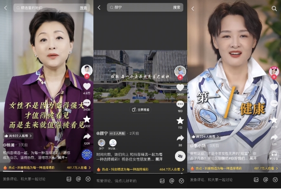 与此同时,抖音精选还联合多位女性名人,希望更多女性被看见,更多问题找到答案。